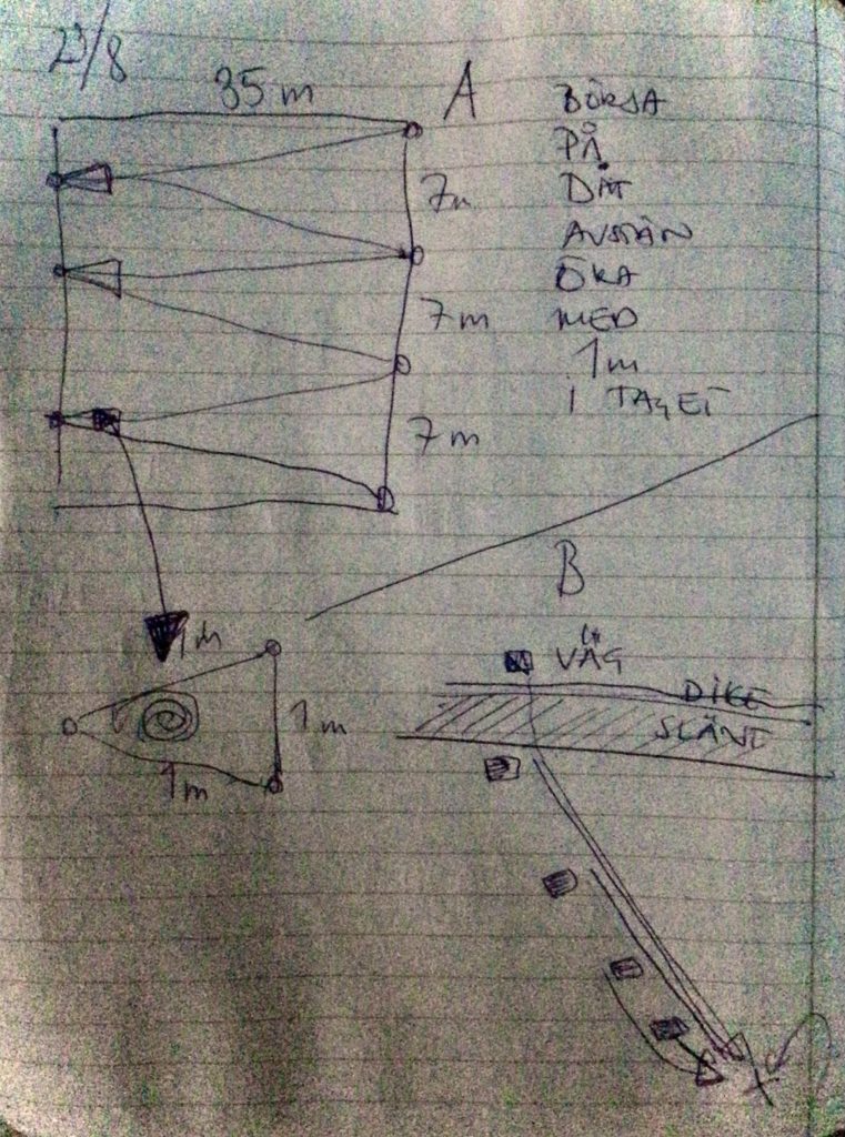 – Station A: som var sökruta med 3 föremål men ett i taget så att de inte kan byta enligt bilden. I detta fall är vi i en ravin med björnbär och hallonsnår i ravinens mitt.