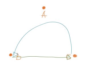 4. Kasta en dummy till hörn B och C.