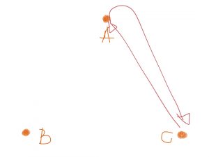 9. Gå fot till hörn A. Kasta dummyn till hörn C
