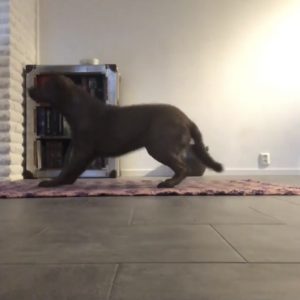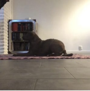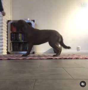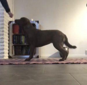 Backa rakt kräver mycket av hunden, styrka, balans och tillit. Det är nog det enklaste att börja med – i vart fall de första stegen. Men sen kommer det svåra att fortsätta rakt bakåt. Gör det i ett smalt rum där hunden inte kan vingla så mycket utan det blir logiskt att gå rakt bakåt.