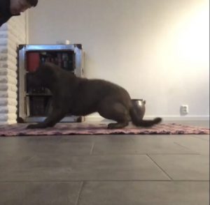 11. hoppa upp från liggande position till sittande position vid din vänstra sida och sen upp på en pall med framtassarna
