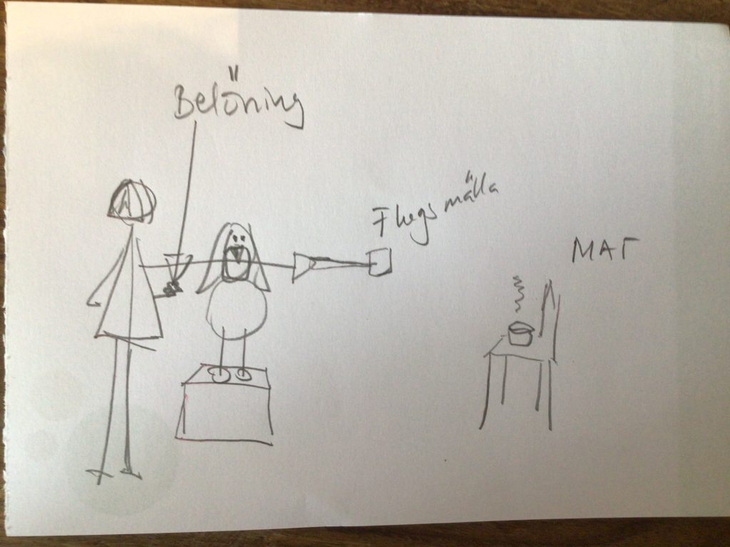 - Hunden kan vara kvar och äta 5 godisbitar utan att tappa kontakten med targeten